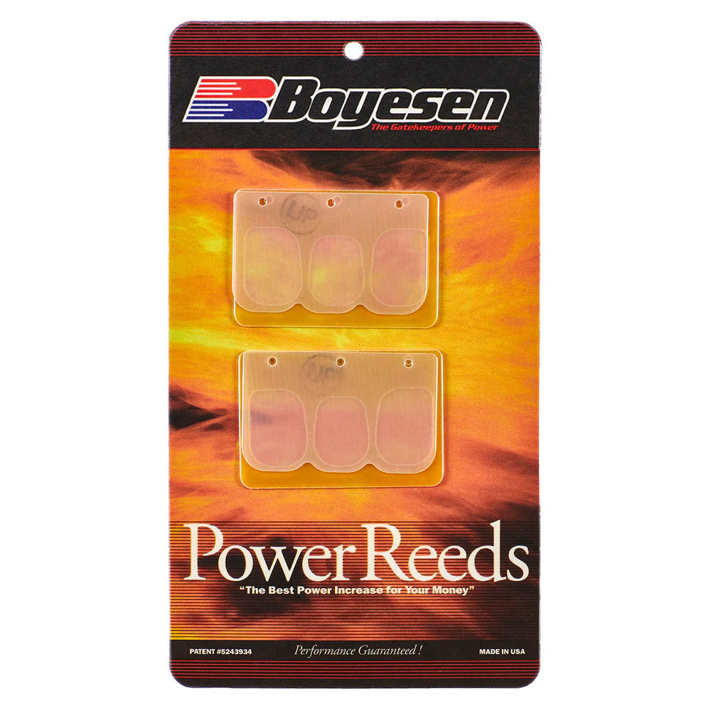 Boyesen dual stage power reeds for Kawasaki 550sx reed engines. Improves throttle response, quicker acceleration, dual flex epoxy fiber material for maximum longevity and reliability. Please email with questions before ordering.